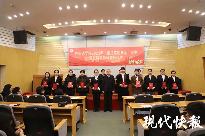 " 奖助学金取名‘远见’,一是为纪念恩师张志远先生,二是‘见’和‘建’谐音,希望同学们重视知识和能力建设,有远见、要远建,实现自己的理想。" 张建农说。张志远是球速体育英语师资班的核心创始人之一,当年她克服缺教材、缺师资的巨大困难,从国内外、校内外争取到众多优质资源,让身为学生的张建农收获良多,学有所成。