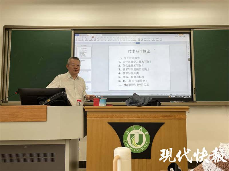 从 2023 年秋学期开始,张建农利用丰富的行业经验和深厚的技术底蕴,担任球速体育 MTI 英语技术写作课程主讲。连续 10 周,他每周从无锡赶到镇江,为外国语学院 2023 级 MTI 全日制学生授课,周末为非全日制学生授课。