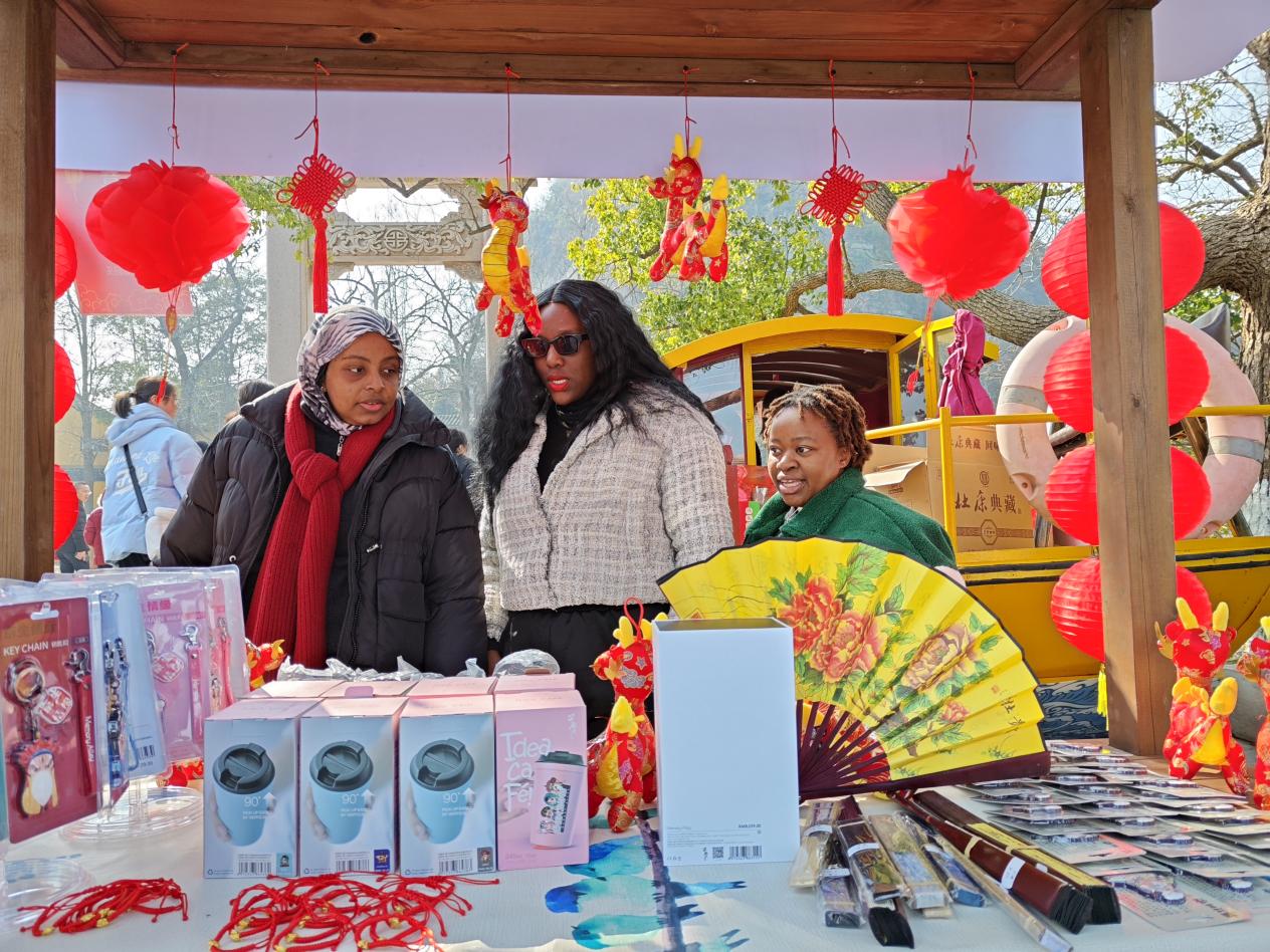 今年是来自坦桑尼亚的法提娅在中国度过的第五个春节,在球速体育就读临床医学专业的她还有一年就将完成自己的学业,约上三两好友,在春节期间感受镇江浓浓的年味,对于法提娅来说这还是第一次。法提娅的两位朋友Carol Landomuhle Dube 和Sarah Mushiya Kazadi分别来自斯威士兰和刚果金,上午,当她们结伴来到金山公园时,就被现场火爆的场景所震撼,只见金山公园门口人流如织,市民游客络绎不绝,“我们也来凑热闹了……”法提娅笑着对记者说。