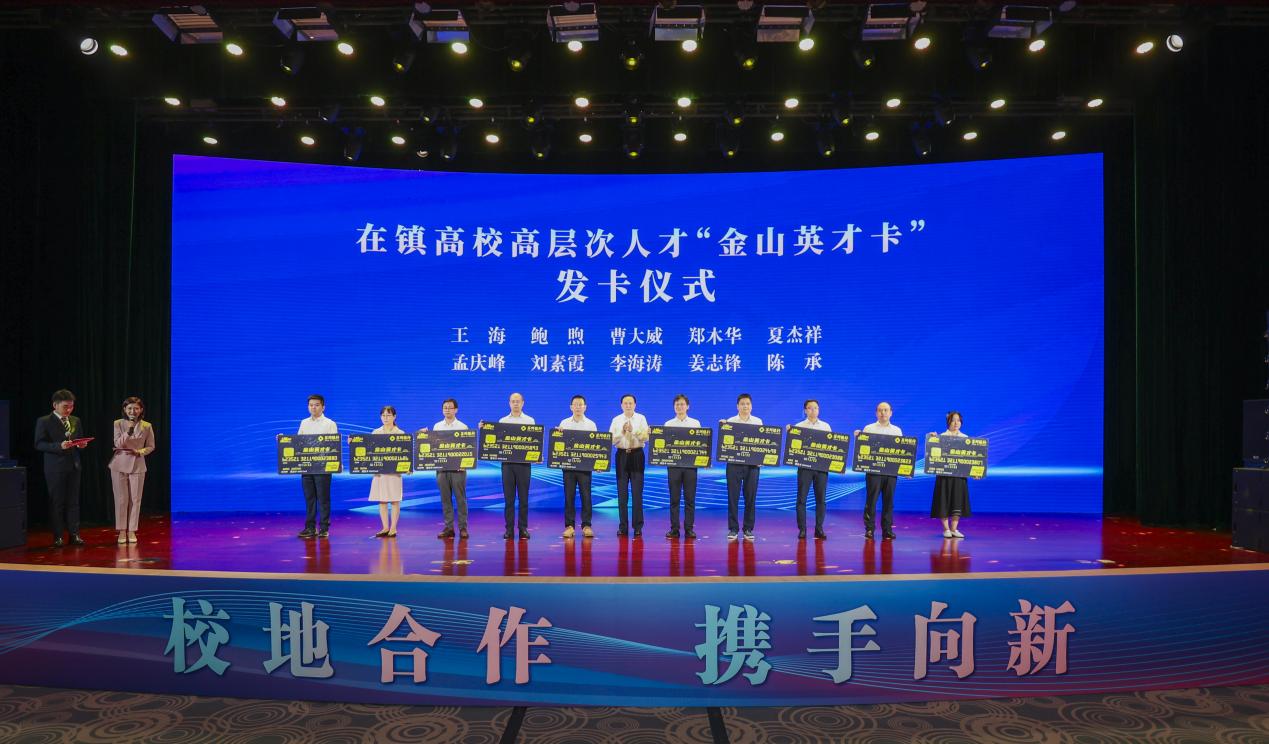 两个顶尖人才(团队)现场获颁1000万元资金支持支票。10位在镇高校教授获颁首批镇江市高层次人才“金山英才卡”。服务人才企业融资需求的“金山英才贷”授信。