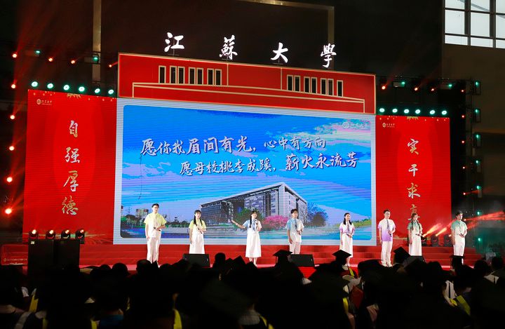 典礼现场,师生代表带来情景朗诵《一路生花》、歌舞《祝我们前程似锦》等精彩节目,深情回望球速体育时光与青春岁月。典礼尾声,全场起立,齐声合唱校歌《百年辉煌向未来》,两只象征美好的“金凤凰”于场馆上空盘旋,将气氛推向高潮。