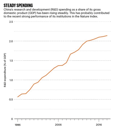 《自然》最后指出,鉴于中国在研发方面持续不断加大投资,中国的科研产出未来可能也会保持比较强劲的增长势头。
