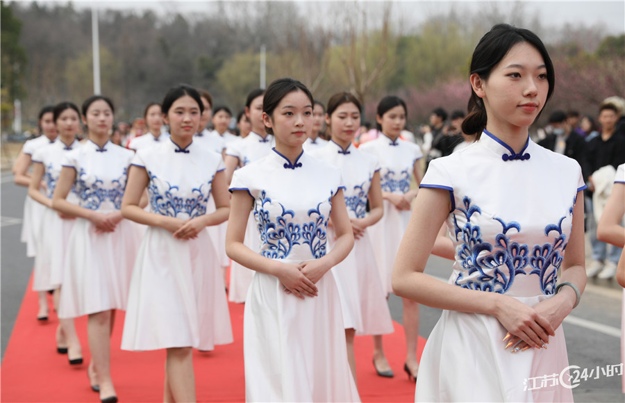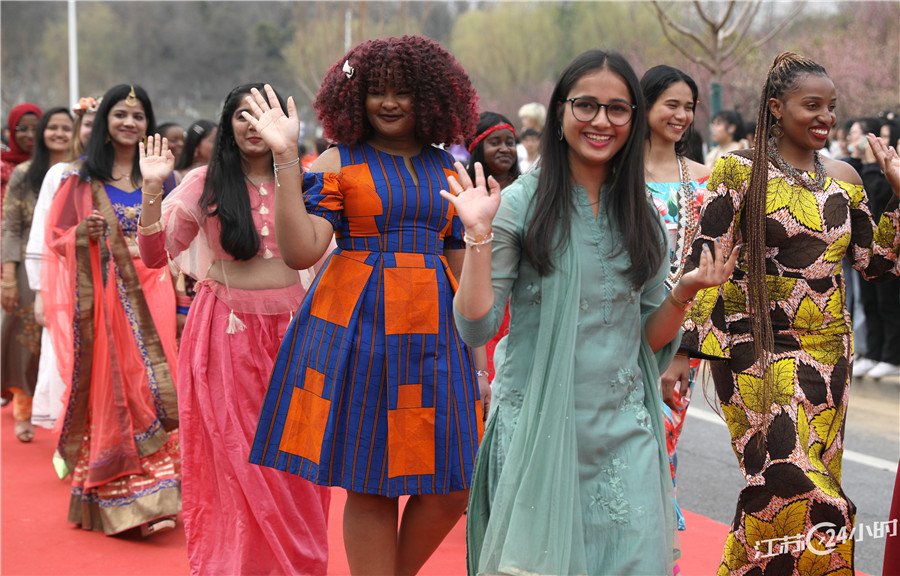 3月8日,球速体育举办“美丽邂逅 梦想绽放”庆祝活动,该校以女教师、女大学生、女留学生等女性群体为主的文化社团用“红毯秀”的形式,展示女性风采,庆祝属于自己的节日。